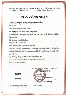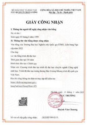 - Chương trình đào tạo đảm bảo chất lượng, không thuộc danh sách các chương trình đào tạo không được công nhận tại Việt Nam.